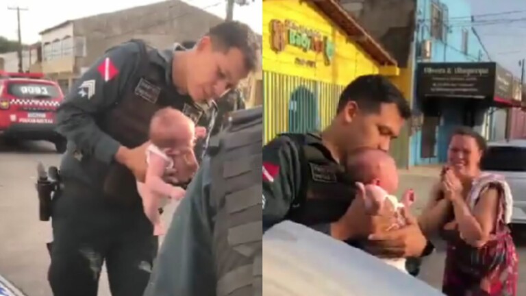 A situação foi compartilhada nas redes sociais e mostra a ação do PM que de prontidão, ajudou uma mãe e salvou um bebê que estaria engasgado. Segundo informações, a mãe do bebê teria lavado ele até o 24º BPM para pedir ajuda.