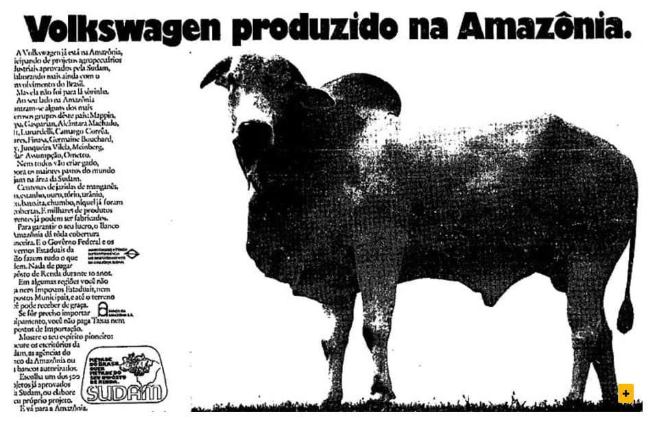 A propriedade, conhecida como Fazenda Volkswagen, foi um dos maiores projetos agropecuários implantados na Amazônia durante o regime militar, período em que o governo incentivava empresas nacionais e multinacionais a investirem na ocupação da região.