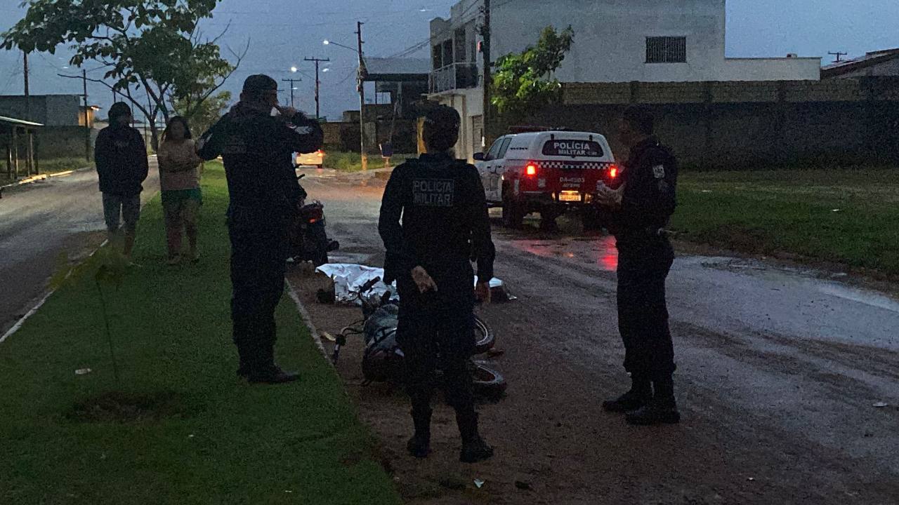 Um homem que ainda não teve o nome divulgado, morreu no fim da tarde deste sábado (25), ao cair de uma moto e bater a cabeça no meio fio.
