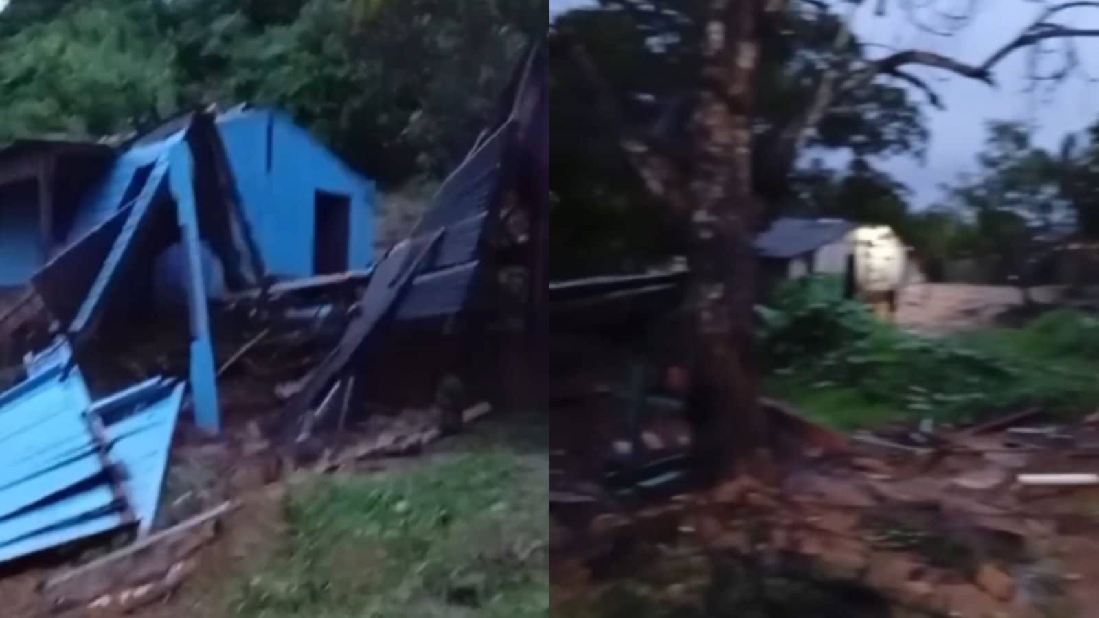 Nas imagens, é possível ver a destruição causada pelas chuvas. De acordo com informações preliminares, não houve feridos.